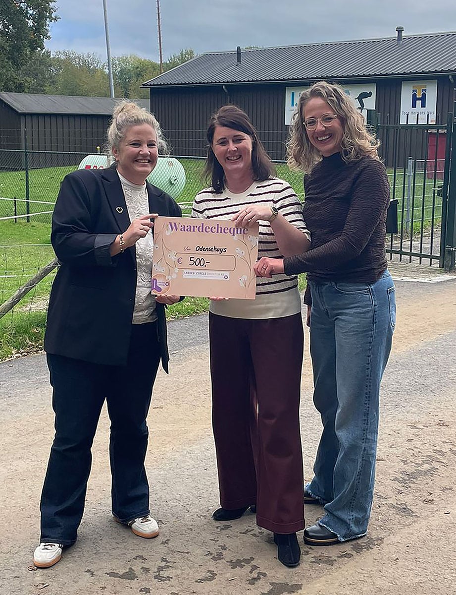 Ladies Circle 42 overhandigt initiatiefneemster Janine Buschman een cheque van € 500,= voor het realiseren van Odensehuis Dronten.